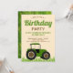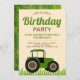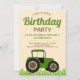 Invitation Fête d'anniversaire tracteur vert moderne pour enf