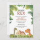 Cette invitation à une fête d'anniversaire de 3 ans avec un dinosaure jurassique mignon peut être personnalisée avec les détails de la fête de votre enfant. Conçu par Thisisnotme©