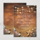 Cartes d'invitation d'anniversaire sur le thème de la plage pour adultes avec un fond de grange en bois rustique, des guirlandes lumineuses scintillantes, une plage de sable avec une étoile de mer et des coquillages. La formulation du modèle, le style et la couleur de la police peuvent être facilement personnalisés pour répondre à vos besoins.