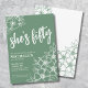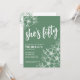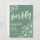 Carton d'invitation élégant pour 50e anniversaire "Elegant Fifty Green". Une invitation élégante et amusante pour un 50e anniversaire avec des fleurs vertes et blanches pour les jeunes dans l'âme. Un motif floral ludique encadre une typographie script "elle a cinquante ans" mélangée à une police serif plus classique. Célébrez cinquante ans de vie avec ce magnifique design botanique. La partie amusante est que vous pouvez changer TOUTES les couleurs !! Vous pouvez non seulement changer les couleurs de fond et la police, mais également modifier les lignes des fleurs.