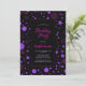 Une invitation de fête d'anniversaire noire avec une bordure en faux parties scintillant violet et rose profond pour un shimmer subtil plutôt qu'un gros étincelle créant un style plus glamour pour l'invitation.
