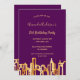 Invitation fête d'anniversaire violet or ville skyline