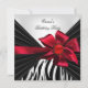 Invitation Fête d'anniversaire Zebra Elegant Rouge Noir Blanc
