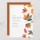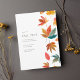 Cette invitation sur le thème de l'automne est parée d'un design enchanteur orné de feuilles d'automne peintes à l'aquarelle. Les couleurs riches et chaudes ainsi que les détails exquis capturent l'essence de la saison, ce qui en fait un choix parfait pour diverses occasions automnales.