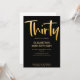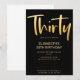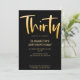 Présentation d'une nouvelle invitation de 30 ans d'anniversaire moderne et élégante, fond noir avec texte de typographie manuscrite dorée "trente". Personnalisez cette carte de modèle en ajoutant vos propres informations de fête.