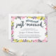 Cette invitation élégante et moderne pour un 70e anniversaire de mariage présente une belle calligraphie au pinceau ; de magnifiques fleurs roses, violettes et jaunes ; et une typographie rustique qui dit "Juste mariés (il y a soixante-dix ans !)."