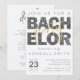 Cette carte incarne parfaitement l'esprit d'une fête de bachelor ! La typographie à paillettes noires amusante et les accents dorés sont tendance, amusants et donnent le ton pour un week-end rempli de plaisir. Mettez simplement à jour cette carte avec les détails de votre fête et préparez-vous à célébrer !