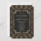 Invitation de Réception de Mariage Art Déco Glamour Gatsby, design de carte vintage charmante avec un style art déco de Gatsby, un vieil Hollywood des années 1920 hurlant, avec superposition de faux feuille d'or et polices magnifiques. Utilisez l'outil de personnalisation pour ajouter vos informations. Pour plus, veuillez visiter ma collection de mariages Art Déco Glamour Gatsby.
