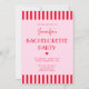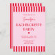 Invitation Fête de Bachelorette à rayures rouges et roses rét