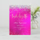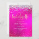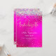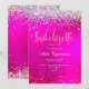 Cartes d'invitation à la fête de Bachelorette PixDezines, police de caractères à signature moderne accentuée, confettis de couleur holographique et fond rose/magenta iridescent chaud et flashy. Tous les éléments sont réglables, couleur de fond DIY + polices.