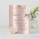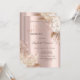 Une invitation moderne, chic et glamour avec des gouttes de paillettes et des fleurs boho sur fond rose gold.