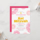 Soyez fiers, réjouissez-vous et mettez en valeur ce jalon de votre Bat Mitzvah préférée avec cette invitation personnalisée amusante, tendance et funky ! Des éclats d'étoiles rétro rose chaud et corail avec des étoiles de David, ainsi qu'une typographie sans serif moderne jaune vif rose et gris foncé, se superposent sur un fond blanc épuré. Au verso, la photo de votre choix et un éclat d'étoiles en fleurs blanches se superposent sur un fond corail rose chaud. Personnalisez le texte personnalisé avec le nom de votre Bat Mitzvah, la date, les informations sur le lieu et la photo. Garantie pour ajouter une touche de style amusant à son occasion spéciale !