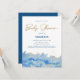 Ce design élégant et gracieux est une aquarelle peinte à la main dans des nuances de bleu clair, de bleu classique et de bleu marine, complétées par des touches d'or (feuille simulée). Les mots "fête de bébé" sont écrits dans une police moderne et présentés dans un style de feuille d'or assorti. Le design abstrait ressemble au rivage, parfait pour un événement sur le thème de la plage, de l'océan ou de la marine. Le texte est en bleu classique et peut être personnalisé pour votre fête de bébé.