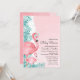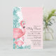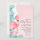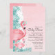 Invitation Fête de bébé à l'aquarelle flamant rose et feuille