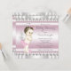 Invitation adorable rose et grise pour une fête de bébé avec une petite ange sur un fond rose et gris argenté et des colliers de perles. Cette invitation rose et grise pour une fête de bébé élégante et mignonne est facilement personnalisable pour votre événement en ajoutant vos détails dans le style de police, la couleur et le libellé de votre choix. Conception imprimée sans perles réelles, nœuds pailletés, etc.