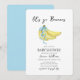 Thème de fête de bébé de marché de fermier adorable, thème de fête de bébé fou de bananes, thème de fête de bébé de fruits, élément de design avec décor de banane à l'aquarelle avec nœud bleu et calligraphie « allons-y pour les bananes » . Parfait pour les bébés garçons et filles. Vous pouvez personnaliser le texte et assortir avec d'autres décorations de fête de bébé dans notre collection.