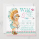 Invitation de fête de bébé tribal pour filles avec une adorable petite fille portant une tenue amérindienne et tenant un attrape-rêves sur un fond pastel rose et bleu sarcelle de design aztèque du sud-ouest avec un script stylé Wild and Free avec un joli cœur et une flèche. Vous pouvez facilement personnaliser cette adorable invitation de fête de bébé tribal Bohème Wild and Free pour votre événement en ajoutant simplement vos détails. Vous pouvez également ajouter une couleur de fond.