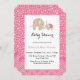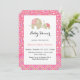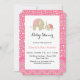 Invitation Fête de bébé éléphant bohémien rose et chevron