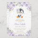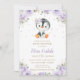 Invitation Fête de Bébé Fille Fleur Adorable Manchot Violet