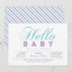 Célébrez un jour spécial pour votre proche avec cette invitation de fête de bébé moderne ! Ce design présente une typographie simple mais élégante "Bonjour Bébé" avec un thème de couleur violet et bleu menthe.