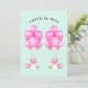 Cartes d'invitation créatives pour la fête de bébés jumelles avec des bouquets de ballons roses uniques et des nouveau-nées jumelles portant des casques.