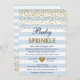 Invitation Fête de bébé garçon avec confettis rayure or bleu