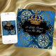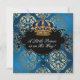 Invitation à une fête de bébé garçon prince bleu noir de la marine royale. Cette belle invitation de fête de bébé à damas bleu marine et or est facilement personnalisable pour votre événement en ajoutant vos détails d'événement, style de police, taille et couleur de police, et libellé.