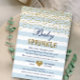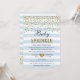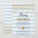 Invitation Fête de bébé garçon confetti rayure or bleu clair