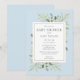 Avec des feuilles aquarelles délicates sur un fond bleu doux, cette invitation chic pour une fête de bébé garçon, une sprinkle ou une fête de couple peut être personnalisée avec vos informations spéciales de fête de bébé, avec un fond sauge argenté au verso. Conçue par Thisisnotme