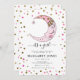 Cartes d'invitation à la fête de bébé lune en paillettes rose et or.
