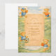 Une douce histoire de conception de fête de bébé de conte de fées avec de mignons ours en peluche jouant à des sports classiques comme le baseball, le basket-ball, le football et le tennis. Illustré dans un style de livre pour enfants vintage doux avec des verts doux et des tons neutres chauds, ce design est parfait pour une fête de bébé neutre ou une famille aimant le sport. Un look confortable et ludique qui semble intemporel et facile à personnaliser pour toute célébration.