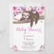 Invitation Fête de bébé paresseux floral rose et endormi