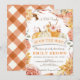 Mon invitation de Fête de bébé petite CITROUILLE neutre en fleurs est la façon parfaite d'inviter amis et famille à une fête ! La carte présente un cadre floral et des citrouilles aquarelles. Le dos de la carte présente un motif à carreaux buffle orange brûlé. Vous tomberez amoureux de ces invitations pour bébé.