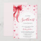 Cette conception présente une fête de bébé sur le thème de la Saint-Valentin "Une petite chérie est en route" avec un ruban rouge scintillant et des cœurs d'amour pastel couleur aquarelle. Parfait pour le thème d'une fête de bébé fille.