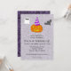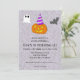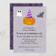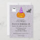 Celle-ci est pour quiconque a un anniversaire juste avant ou le jour d'Halloween, et peut être utilisée pour des personnes de tous âges malgré certains éléments d'apparence mignonne présents. L'élément principal de celle-ci est la citrouille-lanterne portant un chapeau de fête. Cette carte comprend des éléments personnalisables qui peuvent être modifiés à l'aide du bouton bleu "Personnaliser ce design". Vous pouvez modifier le nom et l'âge de la personne, la date et l'heure de la fête, le lieu de la fête et les informations de RSVP.