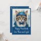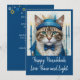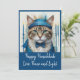 Célébrez la fête des lumières avec cette invitation unique et fantaisiste pour la fête de Hanoukka, mettant en vedette un chat déguisé. Parfait pour les amoureux des chats, ce design allie humour et traditions de fêtes, en faisant une façon délicieuse d'envoyer paix, amour et lumière cette saison. Les teintes de sarcelle, turquoise et bleu ajoutent une touche moderne à cette célébration intemporelle.