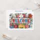 Facile à personnaliser Fête de Chauffage ! Ajoutez simplement les détails de votre fête ! Illustration vintage présentant le mot BIENVENUE entouré d'une variété de fleurs de jardin. Créé à l'origine par Currier & Ives en 1873.
