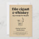 Cigare & Whisky gratuits (en échange de couches). Une invitation de fête de couche amusante qui met en lumière... cigare et whisky ! L'illustration est dessinée à la main.
