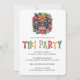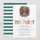 Conception d'invitation tropicale avec une illustration de tête Tiki avec un feuillage luxuriant et un motif rayé au dos - cette invitation de fête Tiki personnalisée est parfaite pour une fête cocktail, un barbecue d'été dans la cour, une fête au bord de la piscine Tiki ou une fête Luau ! Personnalisez-la avec vos propres informations d'événement.