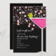 Cartes d'invitation de fête de confettis d'olive de boisson de Martini rose. Personnalisez pour tout événement.