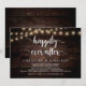 Belle fête de conte de fée, célébration de mariage, carte d'annonce / invitation de mariage en fuite amoureuse, sur bois de ferme rustique, conception de guirlandes lumineuses. C'est parfait pour votre réception de mariage et fête de célébration après le mariage. Ajoutez vos détails dans la même police / lettrage.