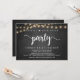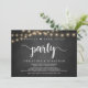 Magnifique fête de conte de fée, faire-part de mariage / carte d'invitation, Fugue amoureux, design moderne de tableau noir de cottage rustique, avec des guirlandes lumineuses. C'est parfait pour votre réception de mariage et fête de célébration post-mariage. Ajoutez vos détails dans la même police / lettrage.