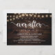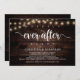 Belle fête de conte de fées, carte d'annonce / invitation de mariage en fugue, dans un design de bois de ferme rustique, guirlande lumineuse. C'est parfait pour votre réception de mariage et votre fête de célébration post-mariage. Ajoutez vos détails dans la même police / lettrage. #TeeshaDerrick