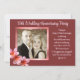 Invitation à une fête d'anniversaire de mariage avec modèle de photo. Les fleurs de plumeria roses et le papier rouge vintage font une invitation élégante avec des modèles de texte faciles à utiliser. Téléchargez une photo du couple qui est encadrée dans un cadre dégradé rose. Le texte est en police de calligraphie manuscrite en rose très clair. Toutes les informations sur la fête sont ajoutées dans un paragraphe avec une autre ligne en haut pour le titre de la fête. Réalisée pour une célébration d'anniversaire de mariage, mais cette invitation conviendrait pour n'importe quelle occasion, y compris un mariage décontracté.