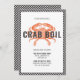 Invitation pour une fête de crabe ébullition avec un motif à carreaux qui lui donne une atmosphère conviviale.