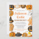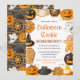 Cette conception d'invitation festive pour Halloween présente des cookies aquarelles peints à la main dans des formes classiques effrayantes, y compris des citrouilles, des fantômes, des chauves-souris, des araignées et des squelettes. La palette de couleurs orange, noire et blanche vibrante est accentuée de détails dorés subtils, créant un look ludique et pourtant raffiné. Une typographie claire dans des polices inspirées d'Halloween met en évidence les détails de l'événement de manière claire et élégante.