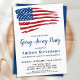 Cartes d'invitation pour une fête d'adieu de soldat avec drapeau américain. Ces invitations modernes avec drapeau américain sont parfaites pour une fête d'adieu de soldat, une cérémonie de départ pour déploiement militaire, une célébration de retour au pays, une remise de diplôme militaire et une retraite militaire. Personnalisez cette invitation avec drapeau américain avec l'événement de votre soldat, son nom et les détails de la fête.