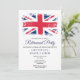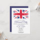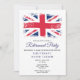 Cette invitation de fête de départ du drapeau Union Jack patriotique peut être personnalisée avec les informations de votre fête dans une typographie moderne. Conçu par Thisisnotme©
