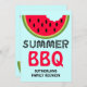 © 2018 Socialite Designs. Un design amusant de pastèque, avec "Summer" écrit en graines de pastèque, réunion de famille et modèle d'invitation au barbecue pour vous de customiser pour votre événement d'été.