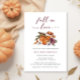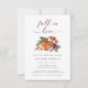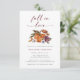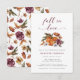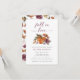 Carton d'invitation pour une fête de fiançailles à la citrouille. Célébrez les festivités automnales avec des citrouilles à l'aquarelle peintes à la main, des fleurs automnales burgundy et terracotta, des botaniques vert forêt et rouille, et un script calligraphié à la main burgundy. Aidons à rendre votre fête de fiançailles extra spéciale avec cette belle invitation.